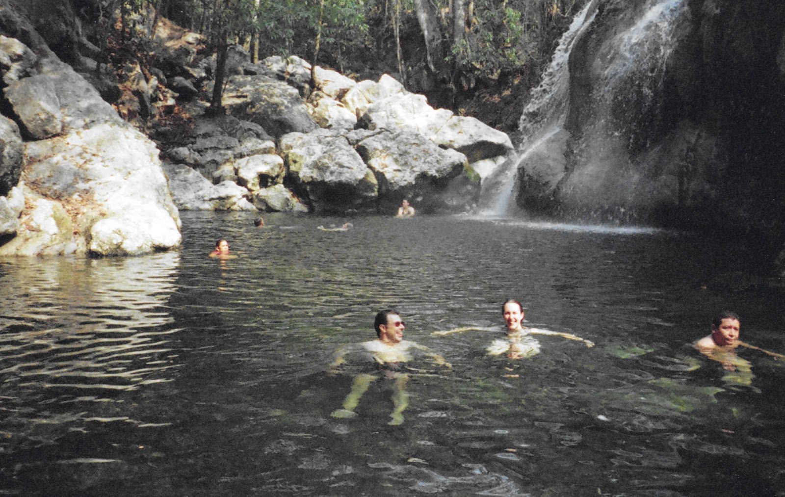 I got up around 7:00AM and immediately took a swim and shampooed my hair (no showers on board).  After a breakfast of fruit and pancakes, we walked up to the hot springs waterfalls.  this is a pretty neat place.  The waterfalls were boiling hot thermal springs and hence it made the swimming hole very warm.  The closer you get to the falls the warmer the water got.  You could actually swim under the falls and it was so warm from the steam, that it seemed like a sauna.